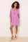 - ياقة مستديرة مع فتحة على شكل V وتفاصيل طباعة متباينة مزينة بأربطة مع شراشيب.