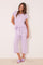 بيجاما بطول كابري مصنوعة من قماش فيسكوز مضلع، بلون ليلكي عصري جداً. مثالية للنوم أو للاسترخاء في المنزل بأناقة.