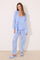 طقم بيجاما مكون من روب وتوب بحمالات وبنطال طويل من قماش الفيسكوز الساتان. الطقم باللون الأزرق مع طبعة "شارع سمسم" تغطي البنطال والروب. مثالي أيضاً للارتداء في المنزل!