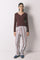 بنطال طويل مخطط من القطن 100% بلون عنابي