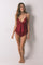 طقم لانجري ساتان ودانتيل باللون الأحمر