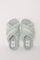 نعال منزلية مفتوحة، باللون الأخضر، مع أحزمة متقاطعة وقماش فرو مبطن. جودة قصوى لراحة قدميك!