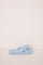 Light blue open-toe shower slippers with a knotted band upper and glitter details. A waffle-textured cushioned design provides comfort and style for your home. - Perfect for everyday wear or to pack in your suitcase.
