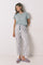 Carrot- fabric long trouser in 100% cotton with an allover border and striped print . Featuring a ruffle detail at the top of the waistband. Ideal for casual, comfortable looks.