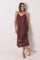 Long, plain satin crepe long nightgown with thin straps and a V neckline decorated with lace. The hem features two matching lace bands that create a sheer effect. Ideal for summer nights.