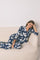 ¾- sleeve classic pyjamas with long trouser in an allover fleck print in viscose satin. Top with a shirt collar and contrasting buttons , contrasting piping details and a bust, chest or breast patch pocket . Lounge trouser with an elastic waistband adjustable with a contrasting drawstring. Ideal for sleeping or lounging around the house in comfort and style.