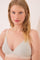 FANTASTIC halterneck triangle breastfeeding bra , made from cotton with a ribbed finish . Grey with lace details.