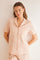 Classic pyjamas in 100% cotton with short-sleeved top and Capri bottoms in a floral print on a light orange background. Super flattering and ideal for bedtime or lounging at home in style.
