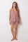 Pyjamas with straps and short made of bamboo fabric (“no iron” effect) with lurex. Top with thin straps and a V neckline with matching lace detail on the edge. Shorts with elastic waistband adjustable with drawstring. Soft touch, ideal for giving an elegant and sensual touch to your look at home or at night.