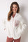 Short robe made of white faux shearling fabric with contrasting trim details, super warm and pleasant to the touch. Wear it with matching pyjamas from the collection, and maintain your style at home too.