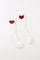 Long 'fluffy' fur socks in white with a positioned red heart print . Super warm and comfy, ideal for when the temperatures drop. Wear them at home or out and about. Keep them on show!